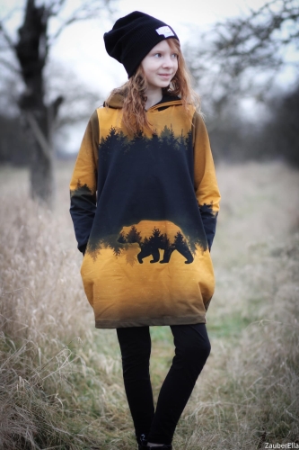 #Bear kommt besonders gut zur Geltung auf langen, weichfallenden Kleidern, aber auch auf Hoddies, Hosen und Co..Kaufst Du mehr als eine Einheit (eine Einheit misst ca. 105 cm (+/- 5 cm) in der Höhe) bekommst Du den Stoff natürlich am Stück!