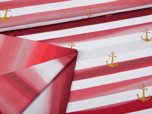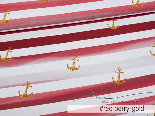 Jersey-Stoff "Ankerliebe watercolor #red berry-gold" (0,25m)