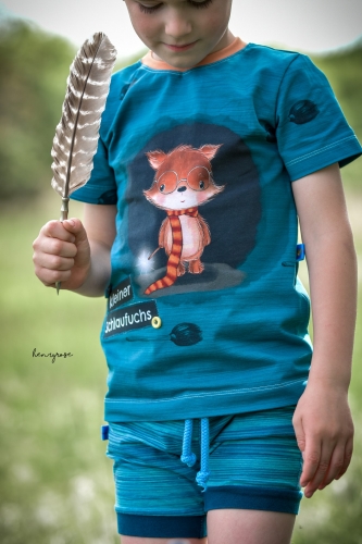 Hier bekommst Du einen tollen Baumwoll-Jersey, welcher zur Serie #Foxy Schlotter & Schlotterblitz gehört.