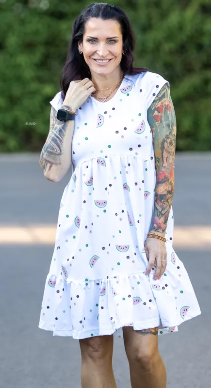 Melonen und Pünktchen - der ideale Sommerstoff.
