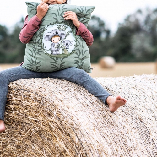 Hier bekommst Du einen tollen Baumwoll-Jersey, welcher zur Serie MiniLiebchen #Kalle Koala & Eucalyptus gehört.
