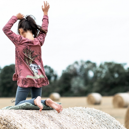 Hier bekommst Du einen tollen Baumwoll-Jersey, welcher zur Serie MiniLiebchen #Kalle Koala & Eucalyptus gehört.