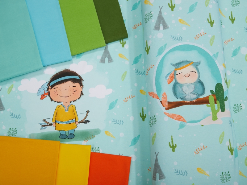 Der Stoff hat eine Breite von ca. 150 cm, besitzt die Ökotex 100 Auszeichnung und ist somit auch für Babykleidung geeignet.