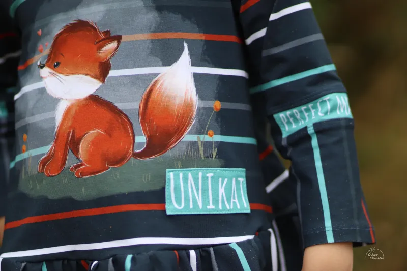 Viele Designbeispiele des Statement Jersey Stoffs Label Liebe findest Du auf unserer Facebookseite unter "mamasliebchen".
