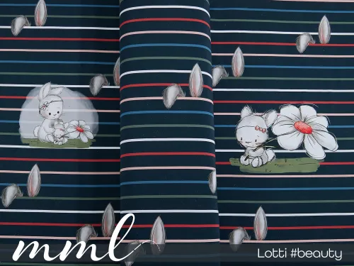 Hier bekommst Du einen tollen Baumwoll-Jersey, welcher zur Serie # Lotti & Streifenliebchen gehört.