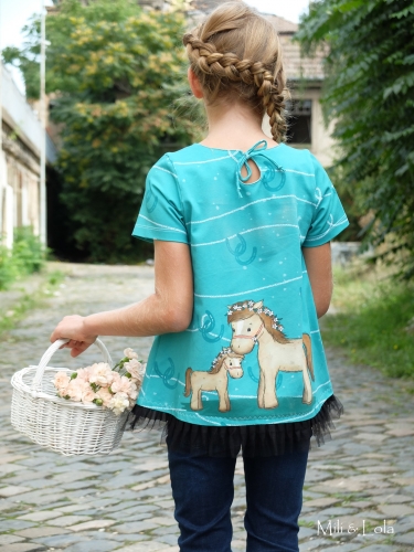 Hier bekommst Du einen tollen Baumwoll-Jersey, welcher zur Serie #Lucky & howdy gehört.