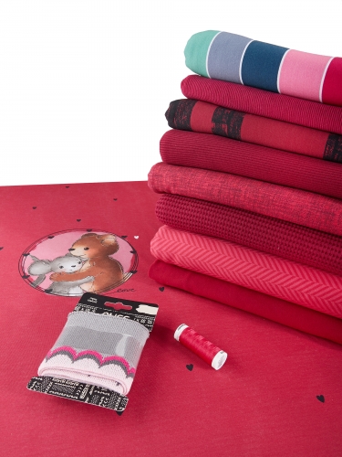 Hier bekommst Du einen tollen Baumwoll-Jersey, welcher zur Serie #Maus & Bär, Herzrasen mini gehört.