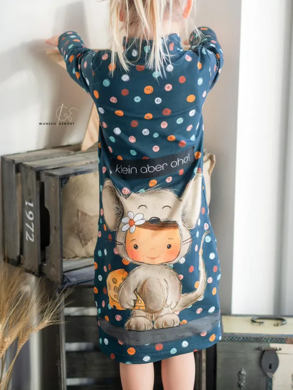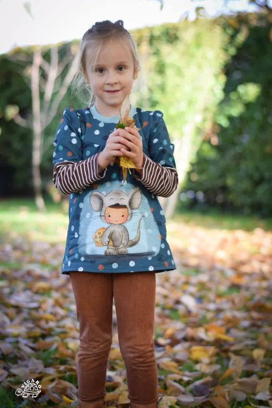 Das MiniLiebchen #Mausebacke ist ein weiteres kleines Kostüm-Kind einer ganze Serie. Das Panel ist dreigeteilt, 1x als Rondell, 1x der MiniLiebchen-Schriftzug und ein großes, angeschnittenes Motiv. Mausebacke ist ein verspieltes Jersey Panel das besonders für Kinder geeignet aber natürlich auch für jeden der sich an dem niedlichen Design erfreut. Das verspielte Panel zeigt Tupfen und zwei Mäuse mit Käse.Kaufst Du mehr als eine Einheit (eine Einheit misst ca. 75 cm (+/- 5 cm) in der Höhe) bekommst Du den Stoff natürlich am Stück!
