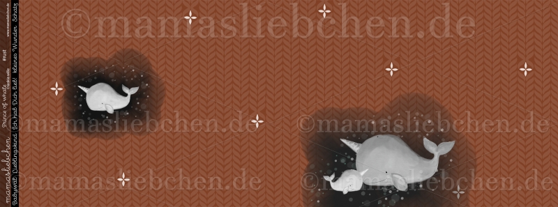 Auf dem Panel befindet sich zweimal ein Motiv mit dem Narwal auf Trailing leaves. Auf der linken Seite ist mittig ein etwas kleines Motiv mit einem einzelnen Wal und auf der rechten Seite ist ein großes angeschnittenes Bild mit zwei Walen.Kaufst Du mehr als eine Einheit (eine Einheit misst ca. 65 cm (+/- 5 cm) in der Höhe) bekommst Du den Stoff natürlich am Stück!