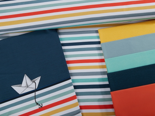 rainbow stripes ist der ideale Kombi-Stoff zu den ahoi stripes Panelen, aber auch einzeln vernäht ist er ein echter Hingucker.