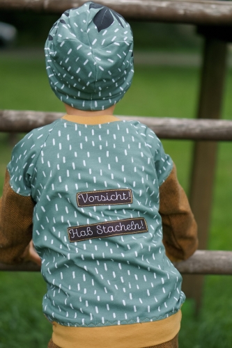 Spike ist der Kombi-Stoff zu Little Liam, aber auch einzeln vernäht machen die Igelstacheln eine gute Figur.Kaufst Du mehr als eine Einheit (eine Einheit misst 25 cm in der Höhe) bekommst Du den Stoff natürlich am Stück!