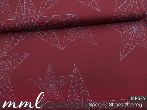 #Spooky Stars ist ein typischer Halloweenstoff auf Baumwoll-Jersey der als Kombistoff mit Spinnennetzen perfekt für ein freches Halloween Kostüm zum Selbernähen geeignet ist. Durch sein schlichtes Design ist er sowohl für Erwachsene als auch für Kinder wunderbar geeignet.