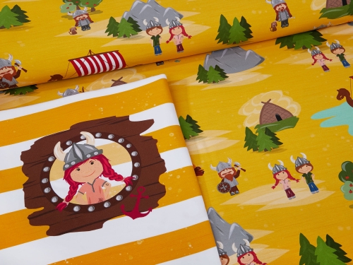 Passend zum Piraten-Thema der Räuberkinder halten wir diesen farbenfrohen all-over-Stoff für euch bereit.