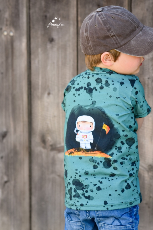 First Step vereint Weltall, Rakete und Astronaut.Kaufst Du mehr als eine Einheit (eine Einheit misst ca. 65 cm in der Höhe) bekommst Du den Stoff natürlich am Stück!