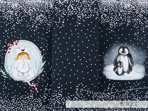 Auf der linken Panelseite findest du ein Kind im Eisbärenkostüm, auf der rechten Seite die süßen Pinguine.Kaufst Du mehr als eine Einheit (eine Einheit misst ca. 65 cm (+/- 5 cm) in der Höhe) bekommst Du den Stoff natürlich am Stück!