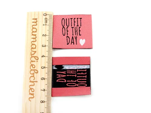 Label sind eine tolle Erfindung und machen jedes Nähprojekt noch besonderer. Wir haben Lederlabel, Weblabel, Korklabel - Label mit Statement oder Bildern.Im Set sind zwei Weblabel mit dem Statement #Outfit of the day enthalten!
